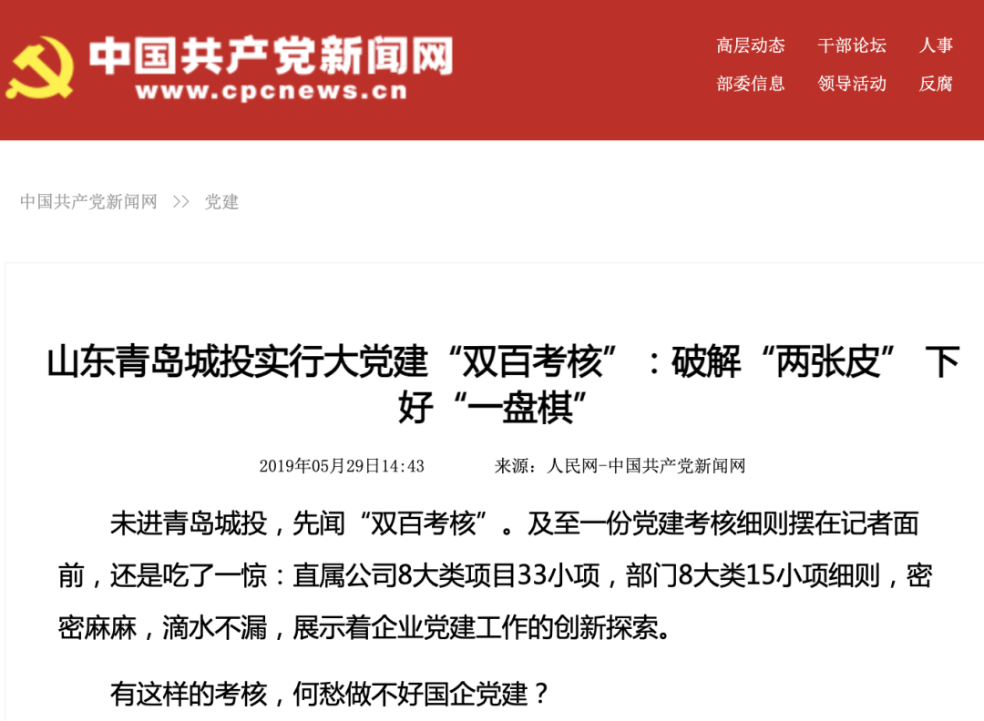 (圖為中國共產黨新聞網報道城投集團“雙百考核”)