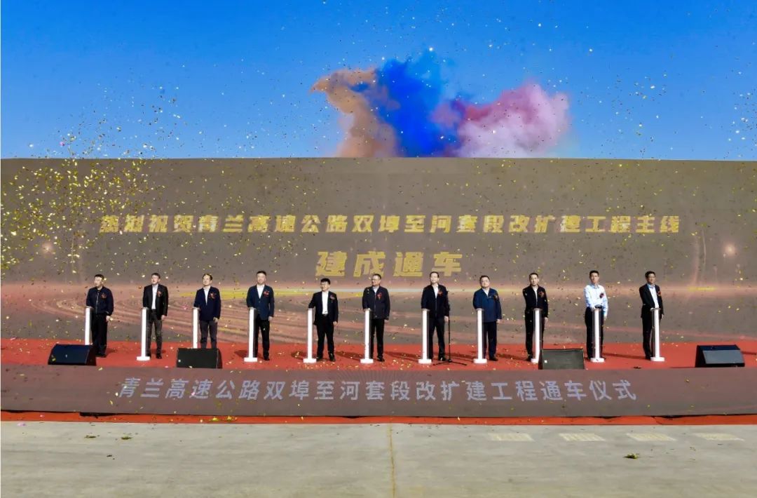 (圖為青蘭高速公路雙埠至河套段改擴(kuò)建工程通車撞彩儀式現(xiàn)場)