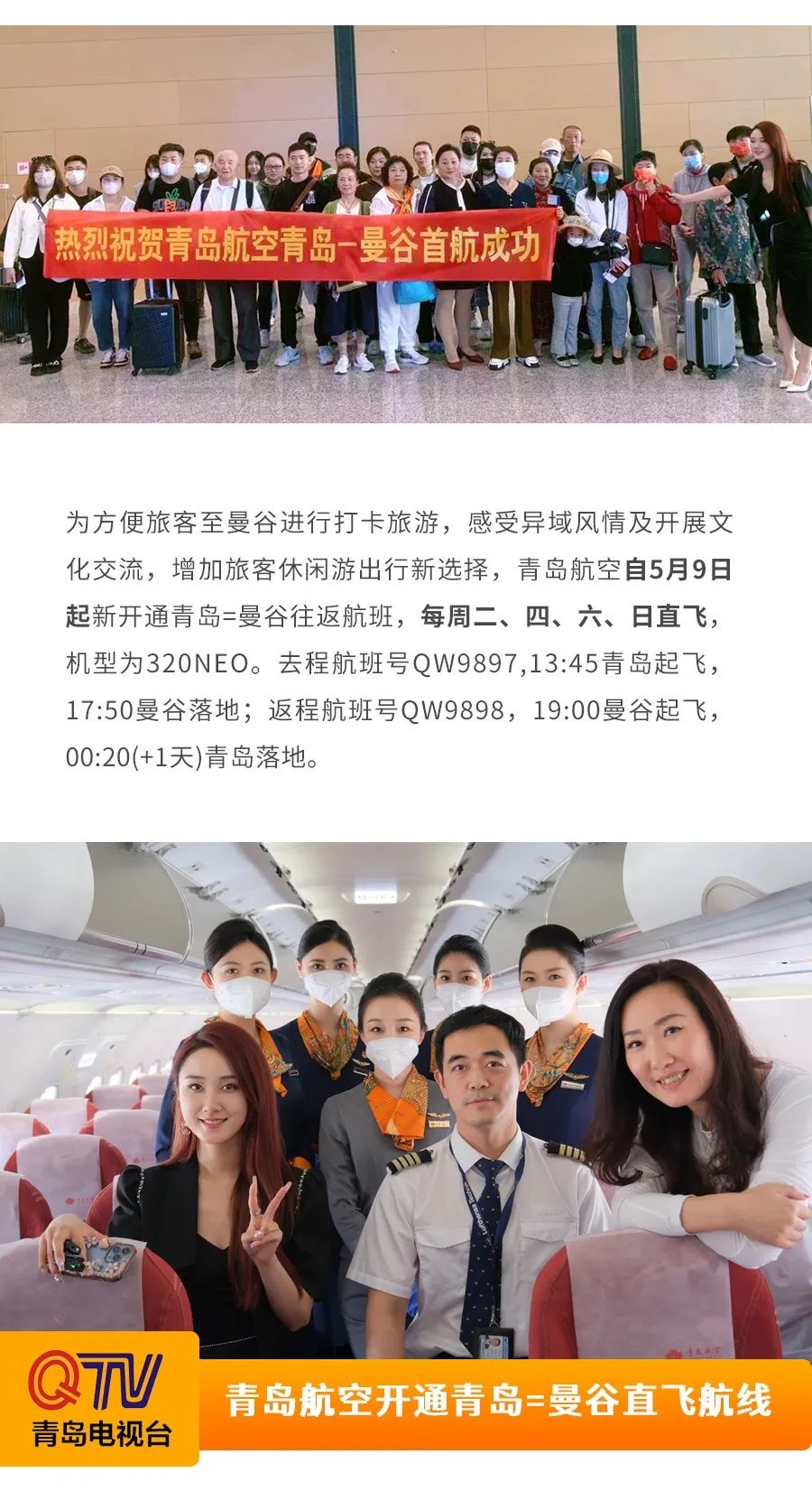 中國民航網:青島航空新開青島—曼谷直飛航線!